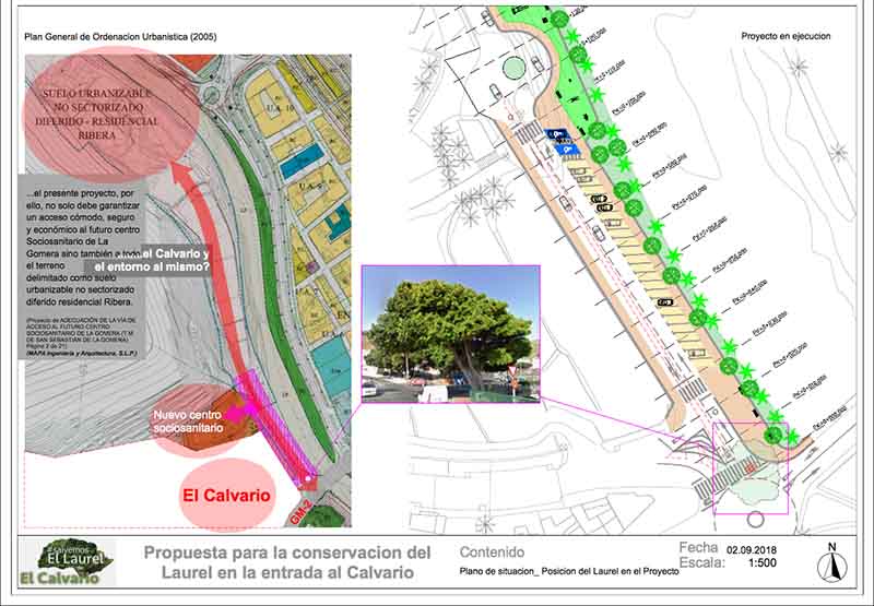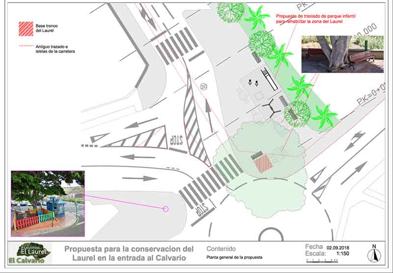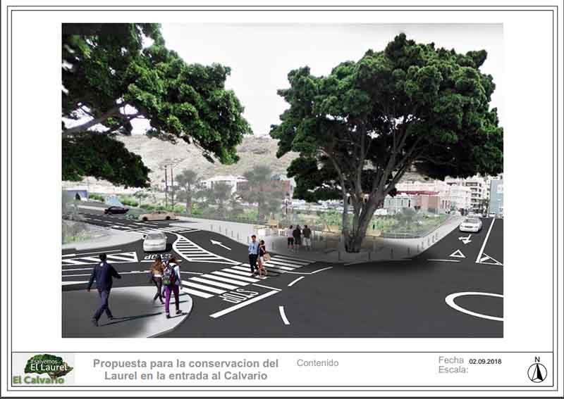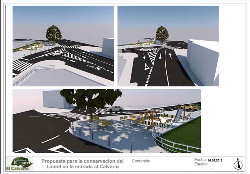 La plataforma expuso su proyecto técnico alternativo, obra del arquitecto gomero Tomás Alonso Hernández, que incluye mantener el árbol en su actual emplazamiento pero con nuevo mobiliario urbano como bancos, mesas, sillas y un parque infantil que revitalizaría la zona. “Lo que nos ahorramos de dinero público evitando la tala y eliminando uno de los cuatro carriles propuestos podemos invertirlo en el mobiliario para el disfrute de vecinos y visitantes que plantea nuestro arquitecto. No solo no hay sobrecostes sino que ahorramos dinero público con la propuesta que hacemos los vecinos”, aclaró la portavoz de la plataforma.