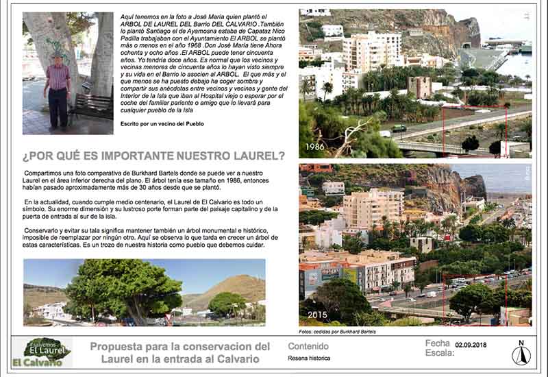 Tras un agitado debate entre representantes públicos y vecinos sobre el objeto de la reunión, la portavoz de la plataforma vecinal “Salvemos el Laurel de El Calvario”, Luz María González Mendoza, y otros vecinos de la zona defendieron la necesidad de mantener el Laurel de Indias en su actual emplazamiento, solicitando la rectificación del trazado planteado inicialmente por la institución insular. Uno de los vecinos, Chenche Hernández, hizo referencia a la obligación que tiene la Isla de La Gomera, como Reserva de la Biosfera, de preservar sus zonas verdes y sus árboles monumentales.