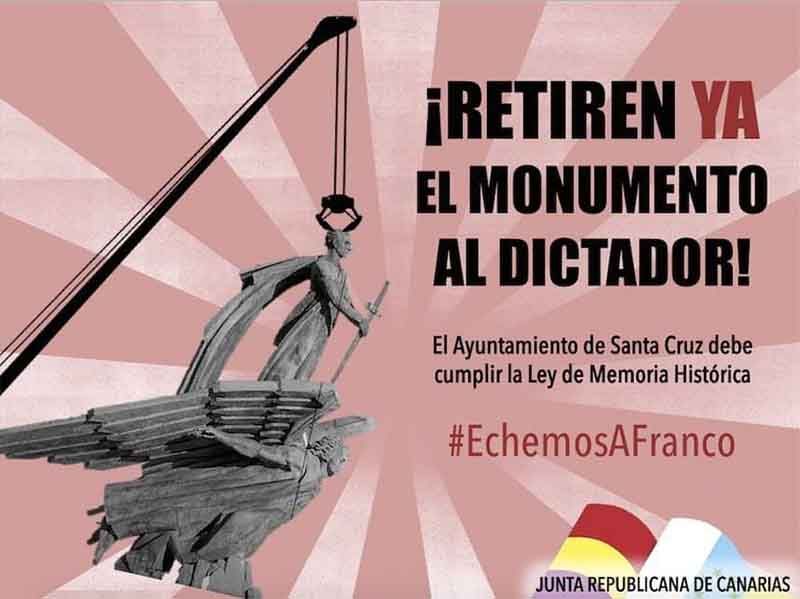 La Junta Republicana de Canarias exige, en este nuevo aniversario del 18 de julio, que se retire inmediatamente el monumento a Franco situado en la capital tinerfeña. La Junta Republicana considera “inconcebible que en 2019, más de cuarenta años después de la vuelta a la democracia en el Estado español, la simbología franquista continúe ocupando espacios públicos.”.
