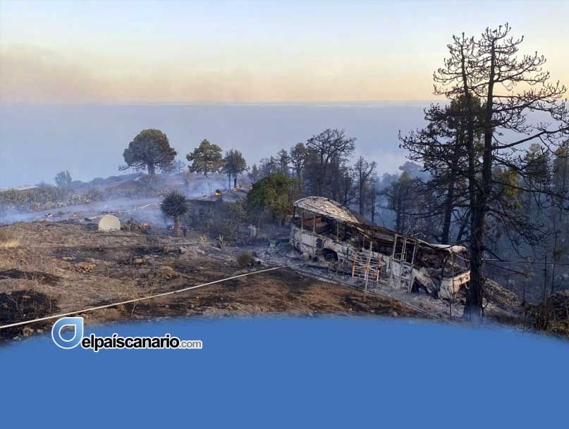 Impacta una ‘guagua apartamento’ instalada en los altos de Buraca, habitada según confirman vecinos de la zona, que ha sido totalmente calcinada junto a otras instalaciones que servía de residencia o de producto turístico camuflado, al menos para los expedientes administrativos