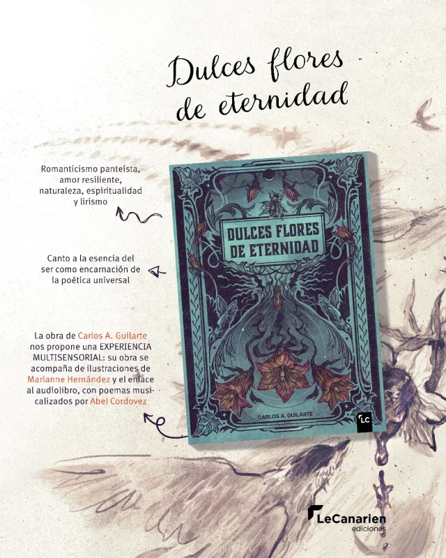 El autor tinerfeño Carlos A. Guilarte (Dadda Wanche) acaba de publicar su sexto libro de poemas titulado Dulces Flores de Eternidad (Le Canarien Ediciones, 2025). Un libro que supone un hito en su extensa obra, al contar -tal y como viene siendo costumbre en algunos de sus anteriores libros publicados- con un audiolibro accesible gracias al código QR incluído en la contraportada del volumen.