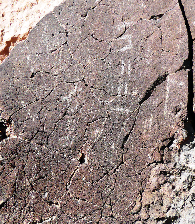 Las inscripciones Alfabéticas pertenecen a la escritura amazigh o líbico-bereber, se encuentran aisladas o asociadas a las figuraciones antropomorfas y geométricas y ocupan en su gran mayoría posiciones elevadas en las paredes basálticas.