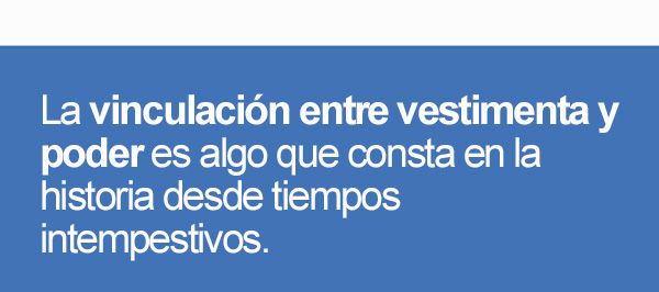 La vinculación entre vestimenta y poder es algo que consta en la historia desde tiempos intempestivos. Ya en la antigua Roma, con una función distintiva de clase y dominio, la toga se superponía al traje nacional, siendo el blanco o el beige el color preferido, y era típica de cargos como senadores o pretores y otras funciones gubernativas de las que deviene la figura protagonista de la judicatura -juez o jueza-. En aquel entonces sólo los hombres podían usarla, siendo su homónima para la mujer la denominada ‘stola’.