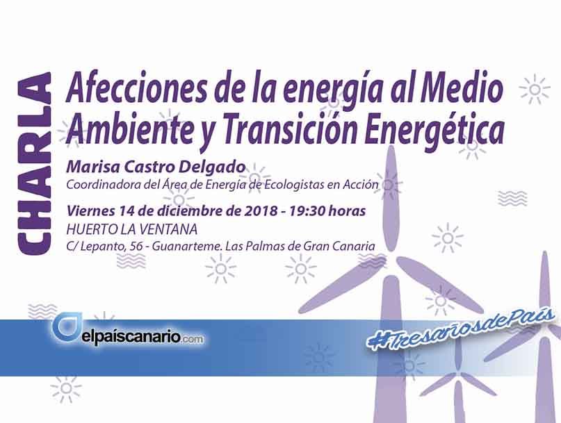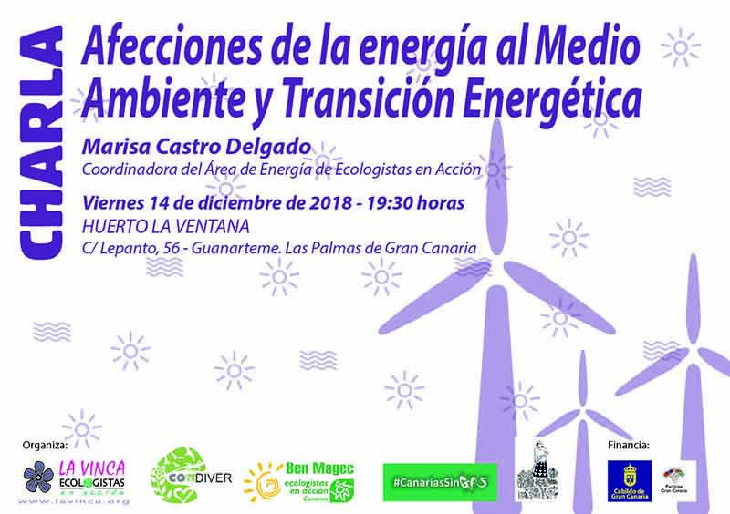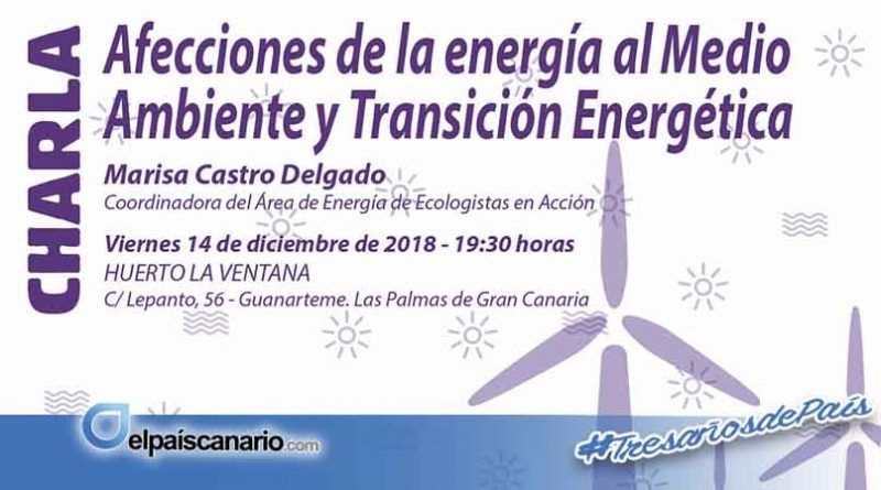 Marisa Castro Delgado, física y coordinadora del área de Energías de Ecologistas en Acción, será la encargada de impartir una charla sobre afecciones de la energía al medio ambiente y transición energética en la jornada del viernes 14 de diciembre, a las 19.30 horas, en el Huerto Okupado La Ventana (c/ Lepanto, 56 – Guanarteme), de Las Palmas de Gran Canaria