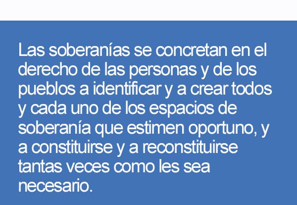 Las soberanías se concretan en el derecho de las personas y de los pueblos a identificar y a crear todos y cada uno de los espacios de soberanía que estimen oportuno, y a constituirse y a reconstituirse tantas veces como les sea necesario.