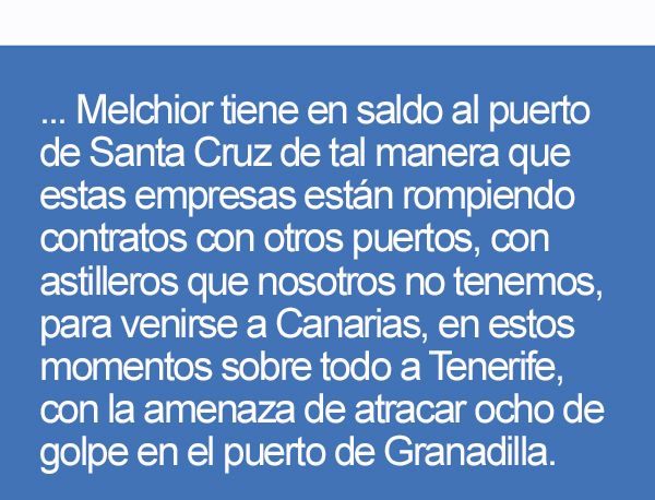 No nos olvidemos que ya en el puerto de la Luz y de Las Palmas las tenemos establecidas desde hace bastante tiempo.