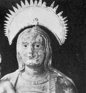 ¿Significa esto que el culto candelario comenzó en esas fechas? No, pues con toda probabilidad hubo una o varias imágenes anteriores. Marín y Cubas alude a una talla diferente de posible origen franciscano. “Tiene túnica blanca, a modo de un alba…”, lo cual no coincide con la descripción de Espinosa, como tampoco la forma del cabello (ocho trenzas), ni la distribución de las letras16. El paso del tiempo y la labor de Espinosa tuvieron como resultado identificar el comienzo del culto con la llegada de la última de las tallas.