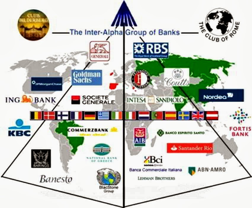 En 1971 se funda el grupo InterAlfa con la fusión de la banca Veneciana, el capital de la banca Holandesa (proveniente como no de los actos de piratería y colonialismo) y la londinense (proveniente como no de los mismos actos de colonialismo y piratería), con sede en la City de Londres (espacio físico dentro de la ciudad de Londres donde se estructura un Estado dentro de otro estado (como el Estado del Vaticano dentro de Roma), de tal manera que incluso la Reina de Inglaterra tiene que pedir permiso para entrar en ella quedando patente quién manda realmente). Este grupo InterAlfa aglutina a la mayoría de los medios de comunicación conocidos y entidades bancarias como el BBVA, o el Banco de Santander, Golman Sachs, ING, Banesto…, y es de aquí de donde emana el verdadero poder de la oligarquía financiera utilizando herramientas como el FMI o los diversos tratados comerciales que en la actualidad nos atañe.