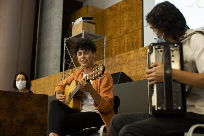En el proyecto también participan otras artistas canarias como Luzmila Valerón, que cantó en el acto y que destacó la importancia de que haya mujeres en un espacio siempre ocupado por hombres y que lo relevante del proyecto es cómo “une el folclore y la igualdad”. “El folclore es un arraigo, pero si no hablas del presente y lo que está pasando no tiene validez”.