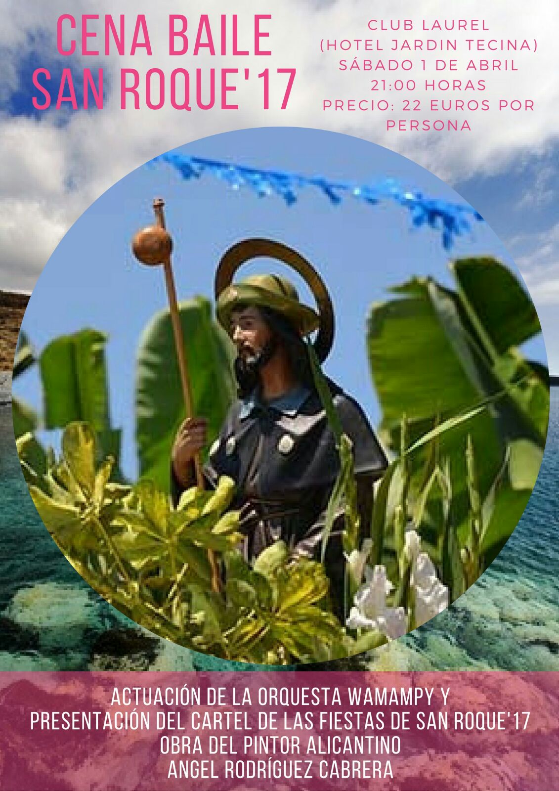 La comisión de fiestas de San Roque, quiere hacer llegar la invitación a la cena-baile que se celebrará en el Club Laurel del hotel Jardín Tecina. La velada estará amenizada por la orquesta Wamampy. A parte de la presentación del cartel como plato fuerte, aseguran que será una noche cargada de sorpresas.
