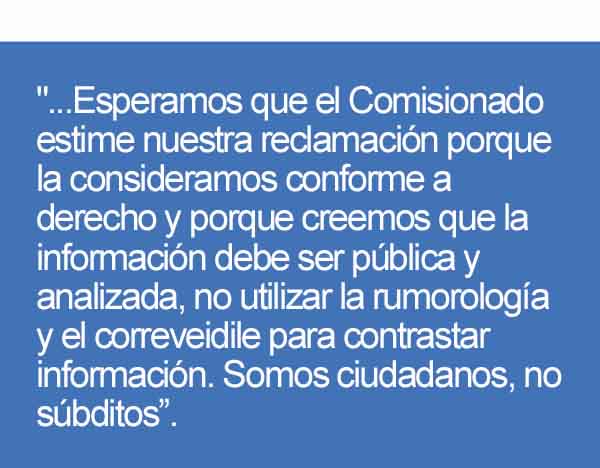 Desde Sí se puede se quiere concluir “no estamos en contra de ASG, estamos en contra de lo que se haga mal, de lo que vulnere los derechos de las personas y de la gestión ineficaz. Esperamos que el Comisionado estime nuestra reclamación porque la consideramos conforme a derecho y porque creemos que la información debe ser pública y analizada, no utilizar la rumorología y el correveidile para contrastar información. Somos ciudadanos, no súbditos”.
