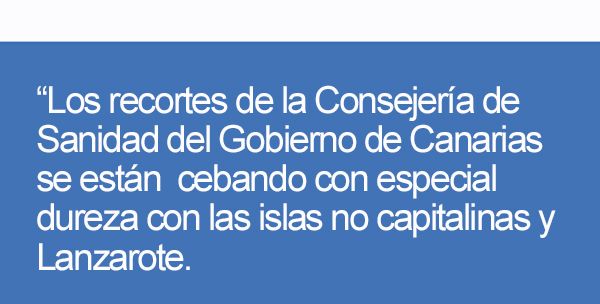 “Los recortes de la Consejería de Sanidad del Gobierno de Canarias se están cebando con especial dureza con las islas no capitalinas y Lanzarote. El pasado año ya sufrimos el recorte de un equipo médico en el centro de salud de Valterra, llevado a cabo por el consejero de sanidad José Manuel Baltar en connivencia con Erasmo García, Director Insular de Sanidad. Ahora esta nueva denuncia de los trabajadores del hospital José Molina Orosa vuelve a dejar en evidencia la política centralista y claramente contraria al bienestar de los lanzaroteños y lanzaroteñas en materia de salud”, ha denunciado Borja Rubio.