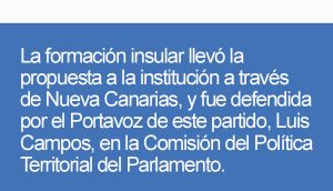 Fue llevada a través de Nueva Canarias, y su Portavoz, Luis Campos