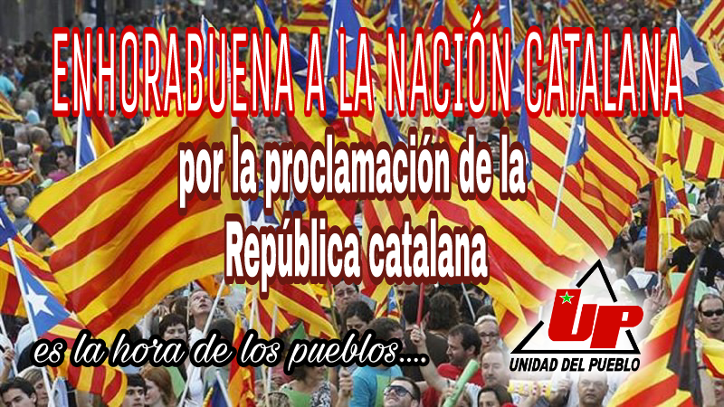 UNIDAD DEL PUEBLO saluda al pueblo de Catalunya, en este día histórico, la conquista de la independencia es ya una realidad, a pesar de las continuas agresiones  e injerencias por parte del gobierno de España.