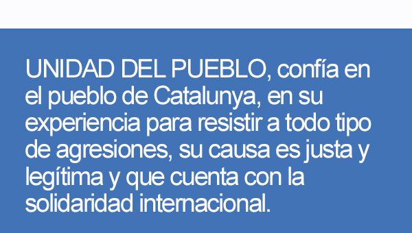 UNIDAD DEL PUEBLO, confía en el pueblo de Catalunya, en su experiencia para resistir a todo tipo de agresiones, su causa es justa y legítima y que cuenta con la solidaridad internacional.