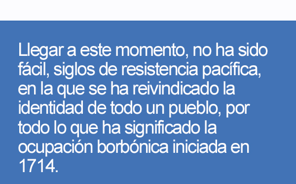 Llegar a este momento, no ha sido fácil, siglos de resistencia pacífica, en la que se ha reivindicado la identidad de todo un pueblo, por todo lo que ha significado la ocupación borbónica iniciada en 1714.